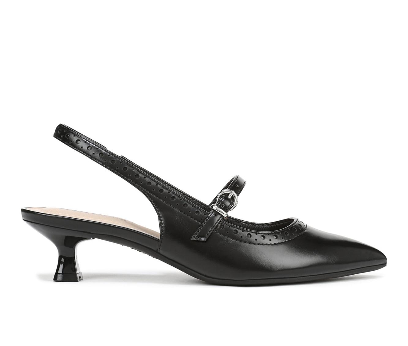 Women's LifeStride Marilyn Booties These Mary Jane slingback pumps add chic style to any outfit. Designed with a faux leather upper, pointed toe, and slim buckle strap, they pair elegance with comfort. The slingback strap features hidden stretch for a flexible fit, while the sculpted kitten heel brings modern flair.