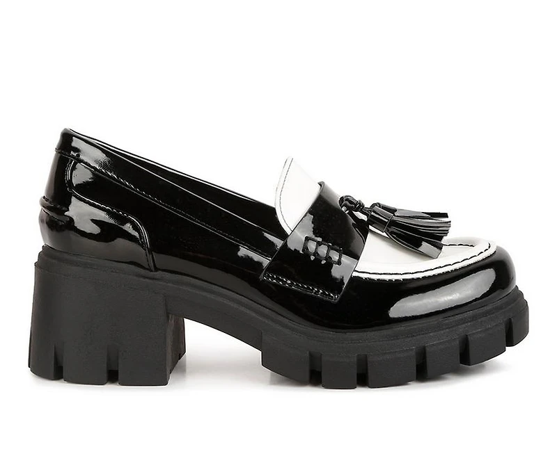 Women's London Rag Jonah Chunky Heeled Loafers The tassels detail gives the loafers a charming vibe that looks fun but also classy. The chunky soles are trendy and give an elevated feel. The loafers are comfortable with soft cushion insoles.