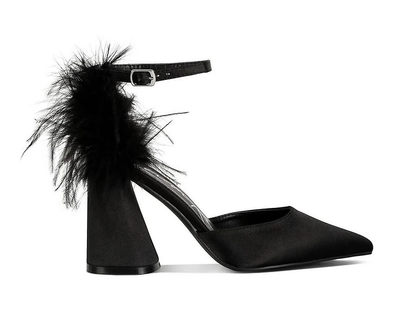 Women's London Rag Palmetta Pumps These flared block heel shoes are all about adding pizzazz and extra flare to your style. They feature a sleek and modern design with a unique fur counter detail that sets them apart. This distinctive touch adds a touch of luxury and uniqueness to your look.