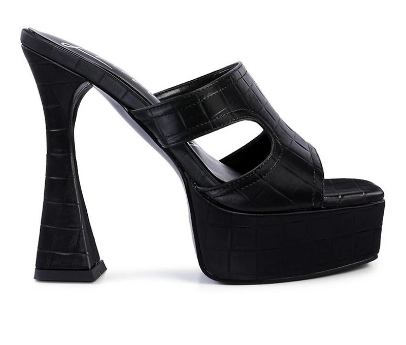 Women's London Rag PD Platform Dress Sandals Cut Out Detail High Platform Croc Sandals with spool heel details and raised bar platform. A shoe you can trust with eyes closed - sleek design with square-cut toe looks trendy and straight from editor's spring choice.