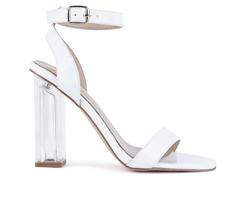 Women's London Rag Poloma Dress Sandals Classy and Chunky, these clear chunky high-heeled sandals have an ankle strap and are chic in every way. The cushion padding in the innersole gives comfort and cuts stress.