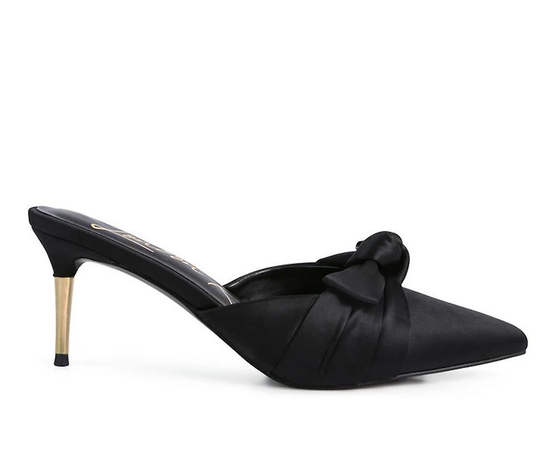 Women's London Rag Queenie Pumps Luxurious Satin Knot-heeled Mule is a beautiful style for summers. It has an elasticated slingback that holds feet well and comes with light cushioning which cuts strain. The knot on top makes it more feminine and the pointed toe makes it look sharp.