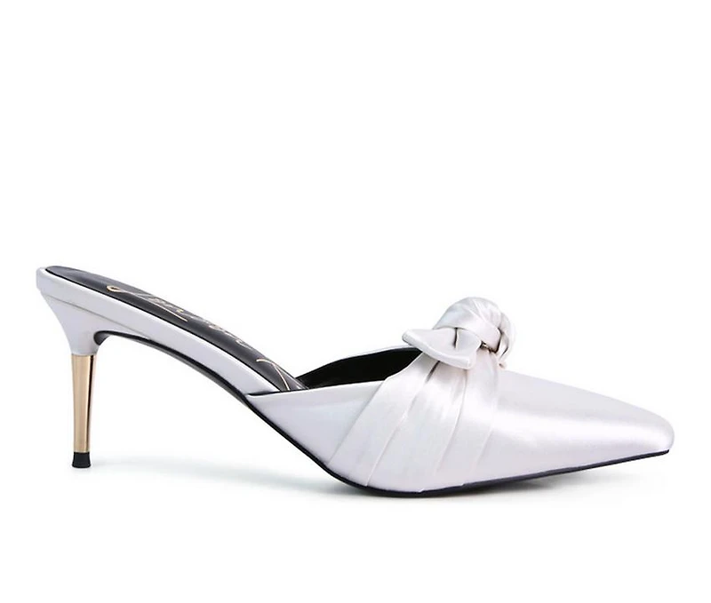 Women's London Rag Queenie Pumps Luxurious Satin Knot-heeled Mule is a beautiful style for summers. It has an elasticated slingback that holds feet well and comes with light cushioning which cuts strain. The knot on top makes it more feminine and the pointed toe makes it look sharp.
