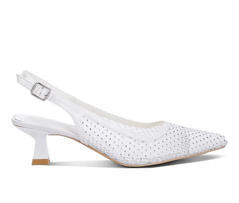 Women's London Rag Siev Pumps Stunning sling back heels with rhinestone details, a pointed toe, and a feminine kitten heel make this pair stand out in your shoe closet for all the right reasons!