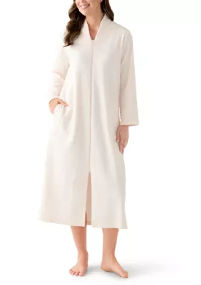 Miss Elaine Plus Size Brushed Back Terry Knit Diamond Long Zip Robe