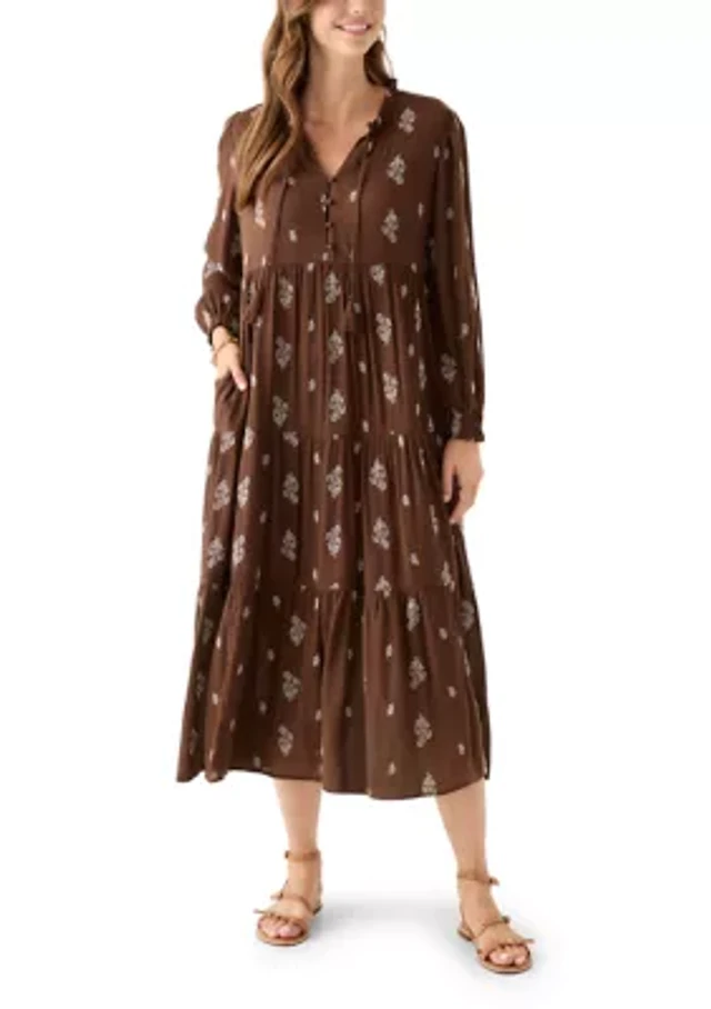 Frye and Co. Womens Long Sleeve Floral Maxi Dress
