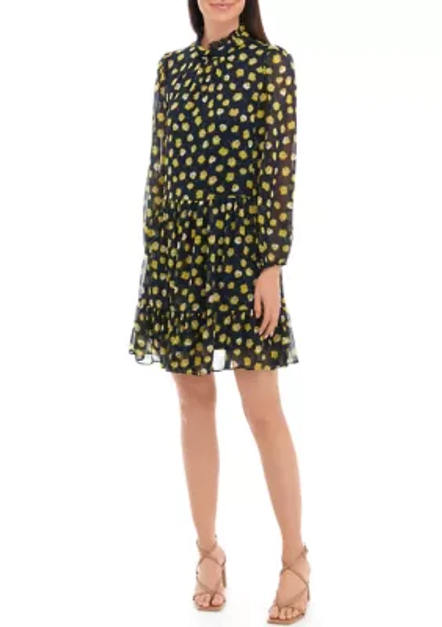 Jessica Howard Floral Print Chiffon Round Neck Balloon Long Sleeve Dress