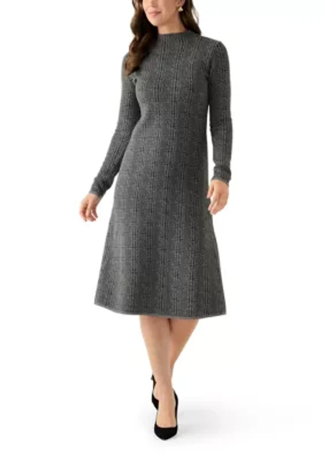 Women's Long Sleeve Mock Neck Sweater Midi Dress