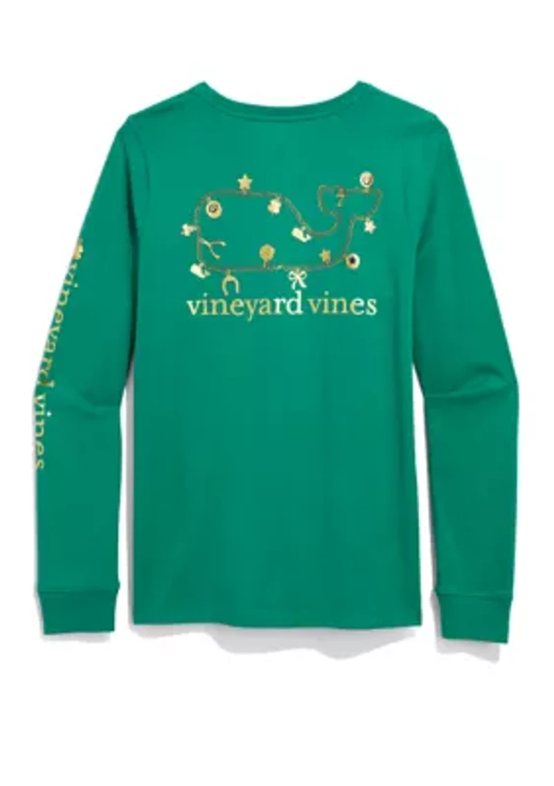 Featuring a graphic on the front, back and sleeve, this Vineyard Vines long sleeve shirt is perfect for everyday wear. Ribbed collar and cuffs St. Patrick's Day graphics Imported Pullover Crew neck Long sleeves Unlined Imported Product Specifications 25.5" L Material & Care 100% cotton Machine washable