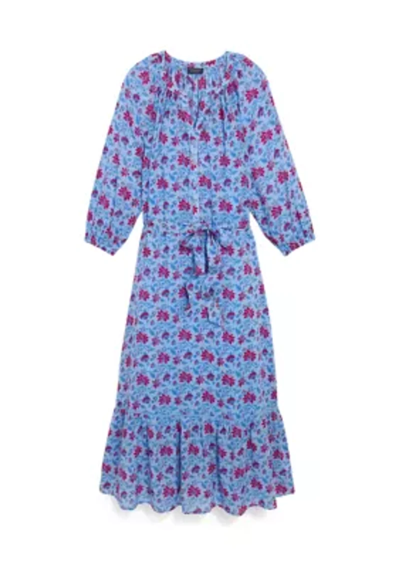 This maxi dress from Vineyard Vines has long, flowy sleeves and a tie waist to create a defined silhouette. Made from breathable fabric, it offers all-day comfort and is perfect for a casual day out. Tie closure V-neck Long blouson sleeves Unlined Imported Product Specifications 46" L Material & Care Cotton, modal Machine washable