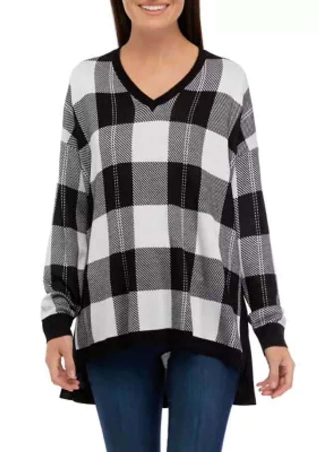 Investments Petite Size Solid Long Sleeve V-Neck Pullover Top