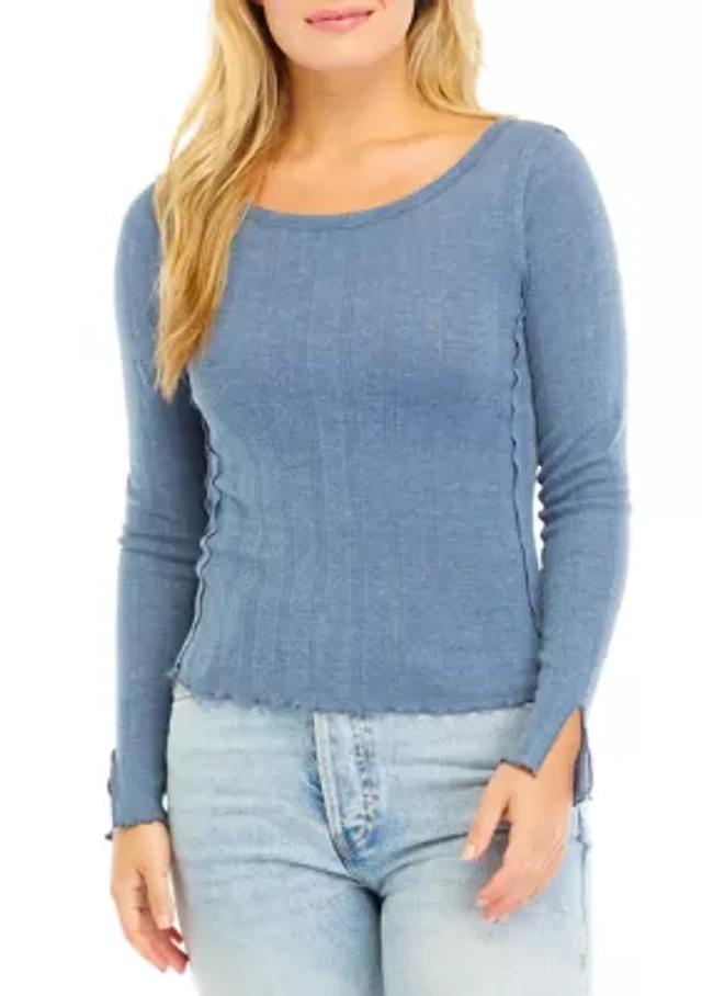 Roudelain Women's Wide Rib Pullover Short with Lettuce Hem