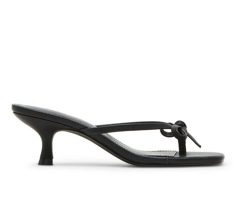 Women's Madden Girl Charlotte Dress Sandals This dress sandal delivers a delicate, feminine look with a sleek silhouette made for elevated occasions. The man-made upper features slim straps accented with a decorative bow detail that adds a soft, polished touch. A slip-on sandal design keeps the profile clean and easy to wear while maintaining a refined appearance. Set on a slim heel, this style provides a graceful lift that feels balanced and wearable. Finished with an open-toe design, it pairs effortlessly with dressy outfits for day or evening events.
