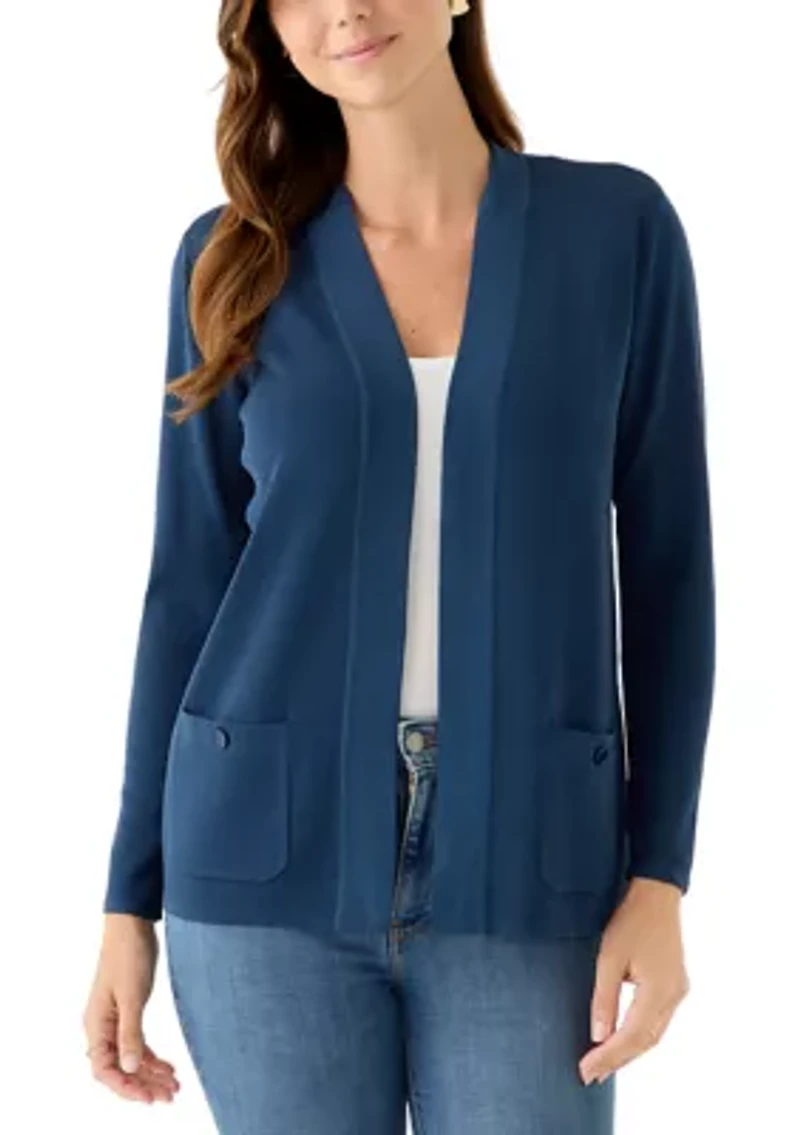 Warm and polished, this pocketed open-front cardigan from Anne Klein offers work-to-weekend versatility. Elevate the workplace attire or at-home look with comfort and style. Open front Collar Long sleeves Imported Product Specifications 26" L Material & Care 60% polyester, 40% viscose Machine washable