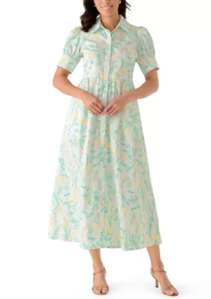This Crown & Ivy™ dress combines playful charm with tailored detail, featuring voluminous sleeves and a crisp collared neckline. Its button‑front design and eye‑catching print make it a versatile piece that transitions effortlessly from daytime outings to evening occasions. Button closure Collared neck Short puff sleeves Unlined Imported Belk Exclusive Product Specifications 46.5" L Material & Care 100% cotton Machine washable