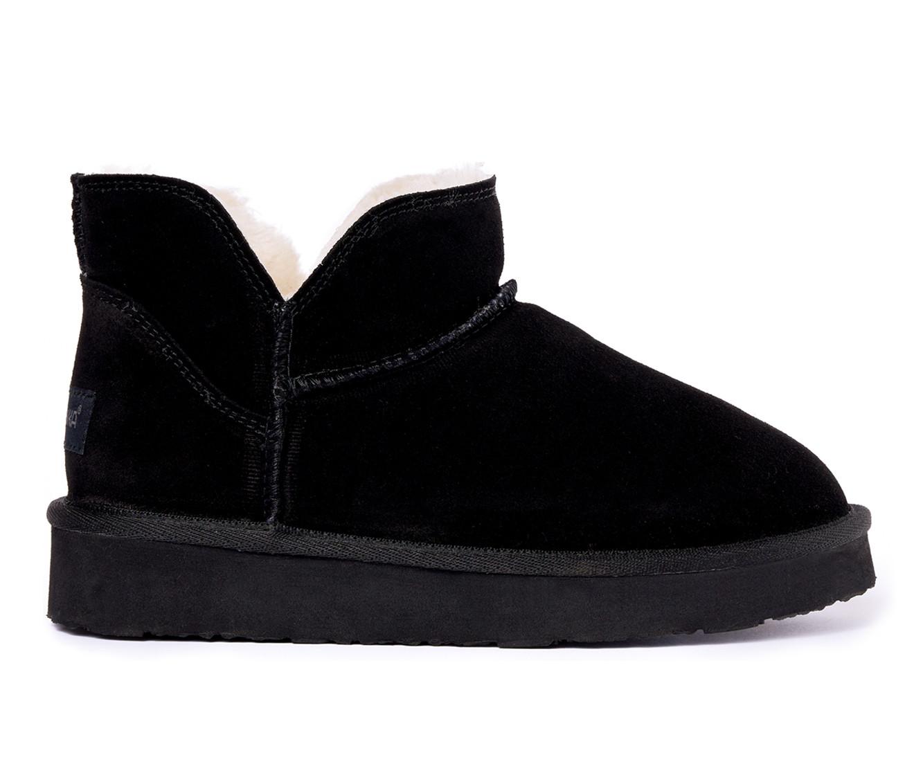 Women's Minnetonka Mavie Winter Boots A warm-hug bootie that sits just above the ankle for extra coverage. The soft, treated suede-look upper pairs with a cozy faux-fur lining to keep toes toasty on chilly mornings. Pull-on convenience makes getting out the door a breeze, and the rounded toe leaves room to relax. Dress-down friendly and weekend ready.