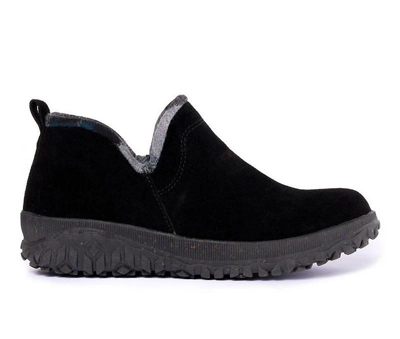 Women's Minnetonka Northmost Boot Built for flurries and quick trips, this cozy boot teams a supple suede-look upper with a soft plaid lining. A deep-tread sole boosts grip on slick walkways, while the pull-on shaft saves time. The rounded toe and supportive lift keep it comfortable from dawn to dusk. A dependable cold-weather pick with casual style.