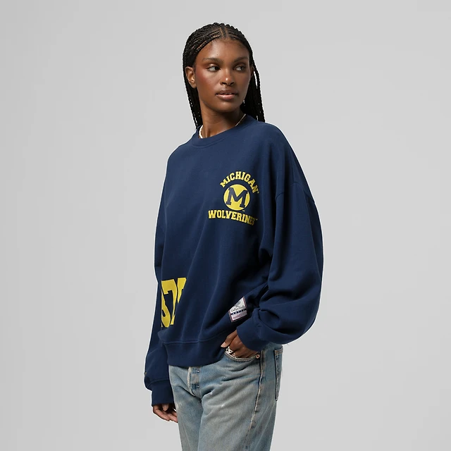 Women's Mitchell & Ness Navy Michigan Wolverines Multi-Hit Sweatshirt