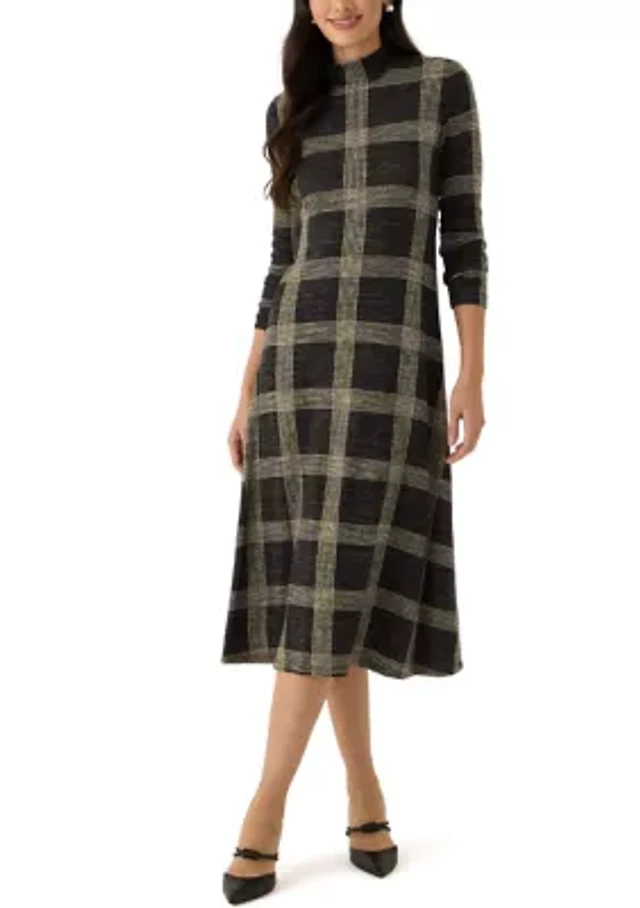 Women's Long Sleeve Mock Neck A-Line Dress