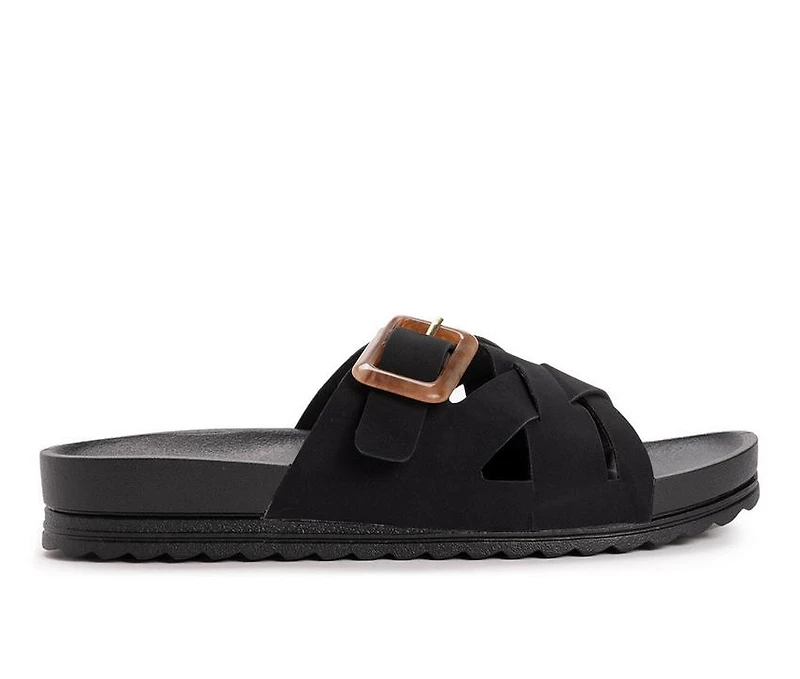Women's MUK LUKS Grand Shayna Footbed Sandals Embrace warm weather in MUK LUKS Women's Grand Sandals. With adjustable criss cross straps and cushioned insoles that mold to your foot, these fashionable sandals allow you to express your individuality while staying comfortable.