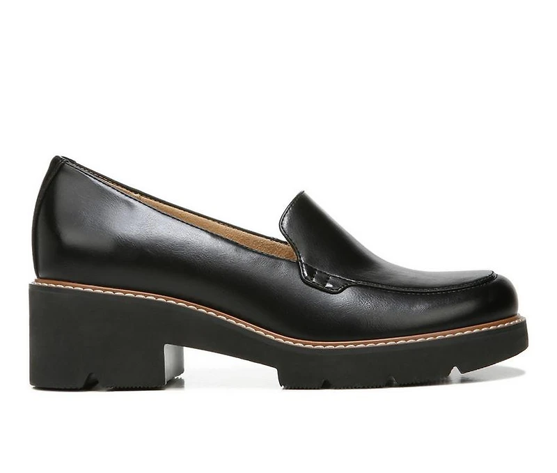 Women's Naturalizer Cabaret Loafers A modern take on the classic lug sole loafer, this slip-on style blends structure and comfort. The faux leather upper features stitch detailing for added texture and visual interest. Built with Contour+ comfort technology, it delivers cushioned support with shock absorption. A 2.25-inch chunky block heel and durable lug outsole ground the round toe silhouette with bold appeal.