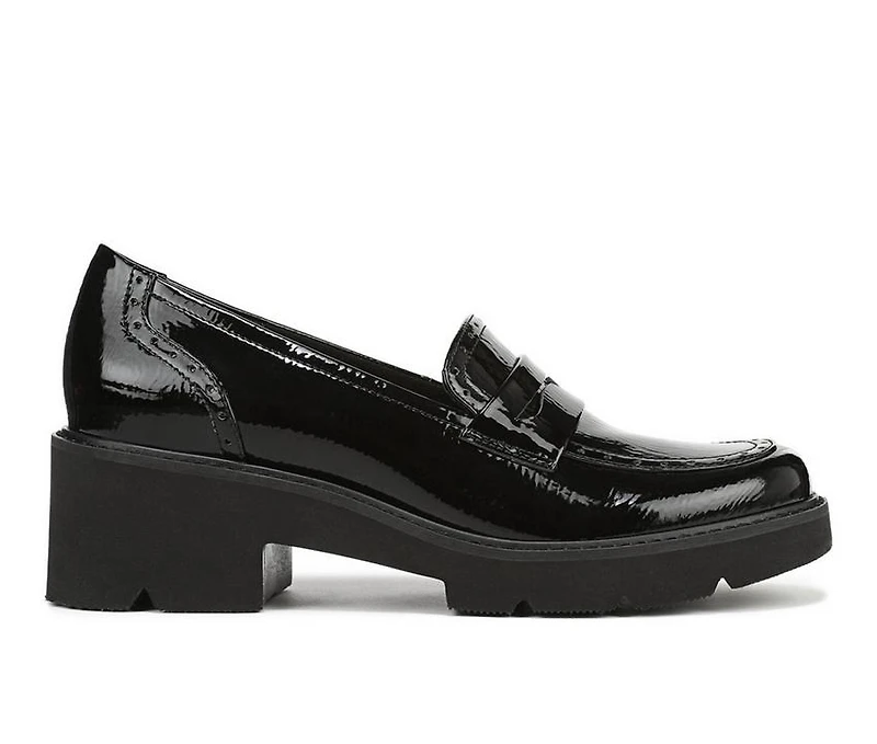 Women's Naturalizer Charisma Loafers Step into confident style with these modern loafers from Naturalizer. Featuring a glossy synthetic upper and classic penny-keeper design, these shoes blend timeless polish with contemporary edge. The chunky block heel and lug outsole add height and attitude, while the cushioned insole provides all-day comfort and support. Perfect for elevating workwear or adding a bold twist to casual looks.