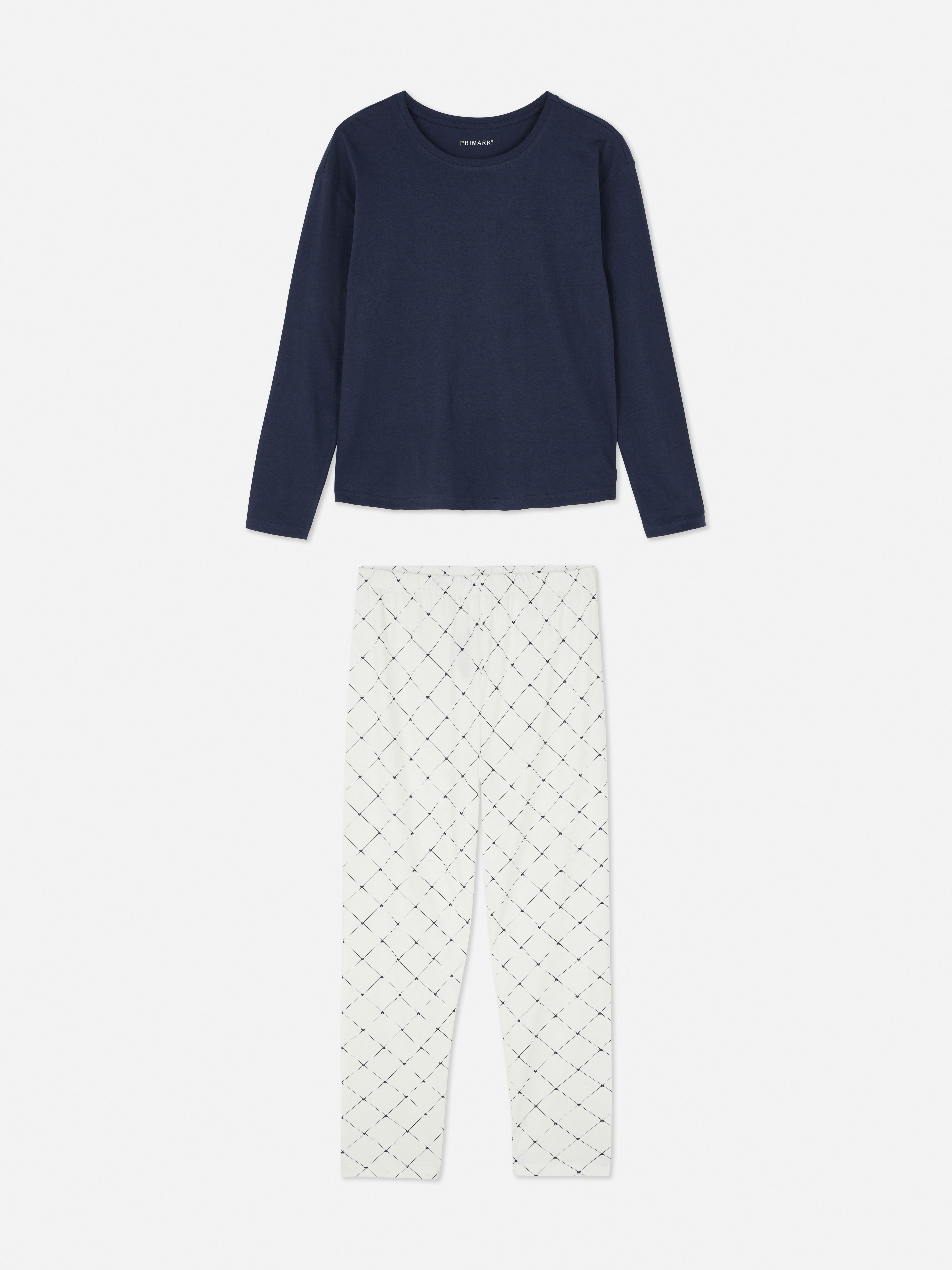 Women's Navy Patterned Long Pajama Set in Franklin, TN