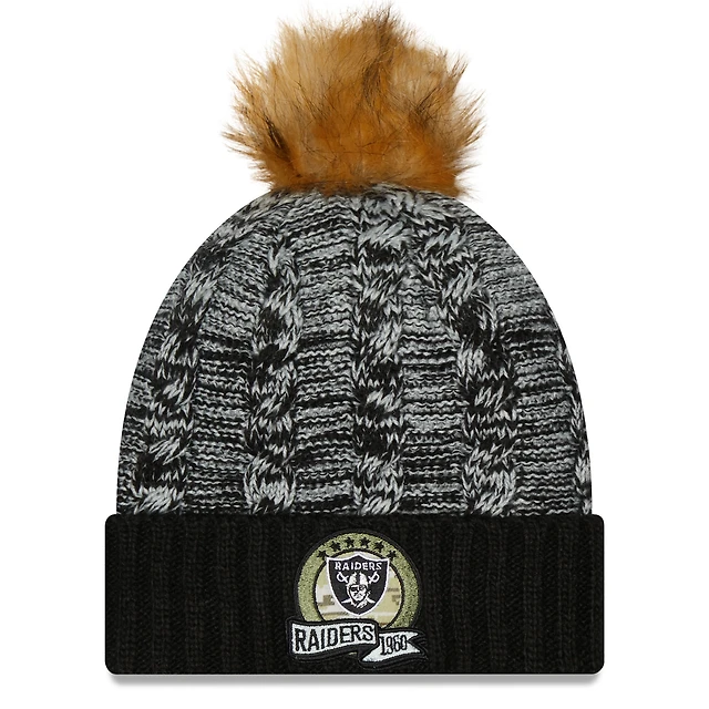 Women's New Era Black/Gray Las Vegas Raiders 2022 Salute To Service Pom Knit Hat