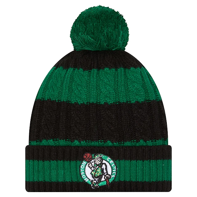 Women's New Era Kelly Green/Black Boston Celtics Braided Cuffed Knit Hat with Pom