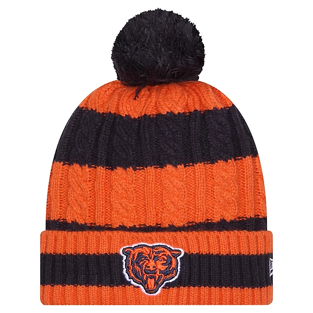Women's New Era Navy Chicago Bears Braided Cuffed Knit Hat with Pom