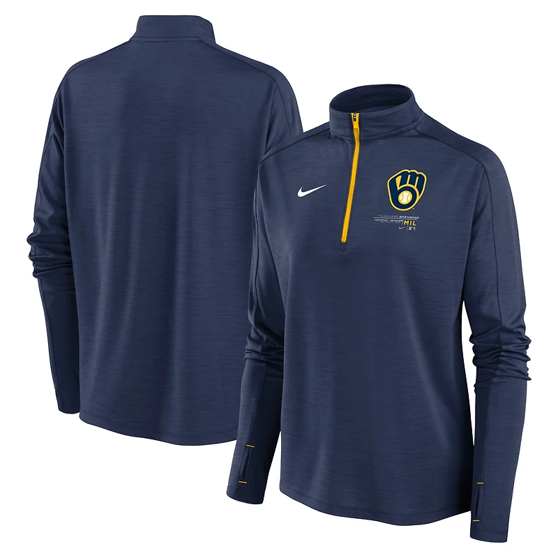 Women's Nike Navy Milwaukee Brewers Pacer Quarter-Zip Top in Franklin, TN