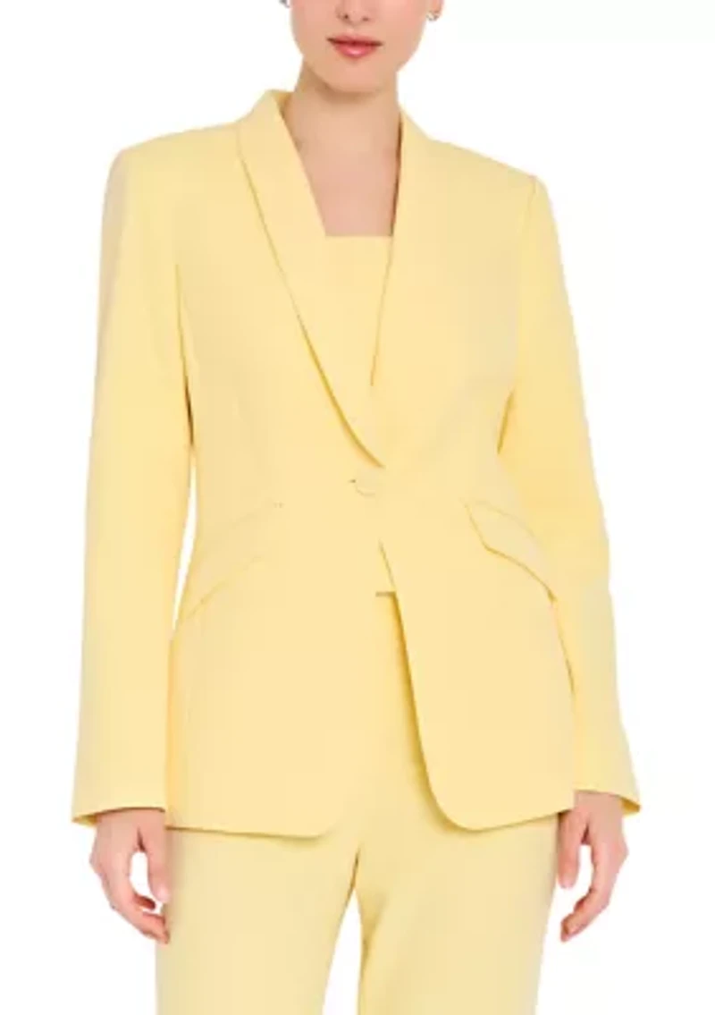 This Tahari ASL one-button blazer adds a touch of subtle elegance to any outfit. Button closure Long sleeves Lined Imported Product Specifications 27.5" L Material & Care 100% polyester Dry clean only
