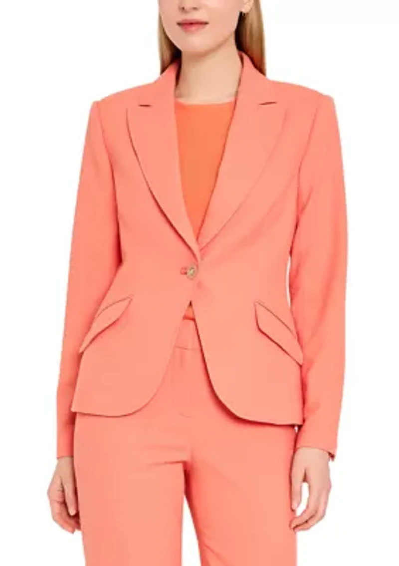 The Tahari ASL Blazer features a tailored silhouette with a classic notch collar and a single-button closure for a polished, modern look. Button closure V-neck Long sleeves Lined Imported Product Specifications 24.5" L Material & Care Polyester, rayon, spandex Dry clean only