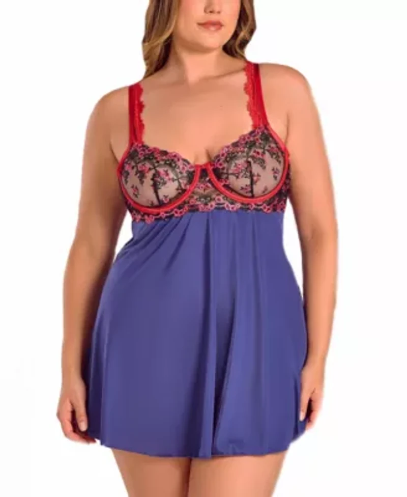 Womens Plus Gypsy Lace and Microfiber Babydoll Lingerie Set