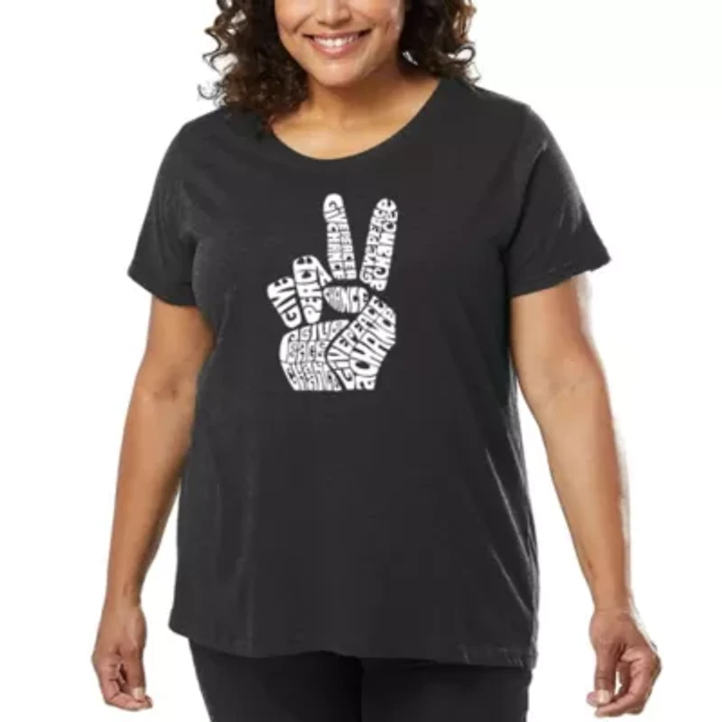 Women's Plus Word Art T-shirt - PEACE FINGERS