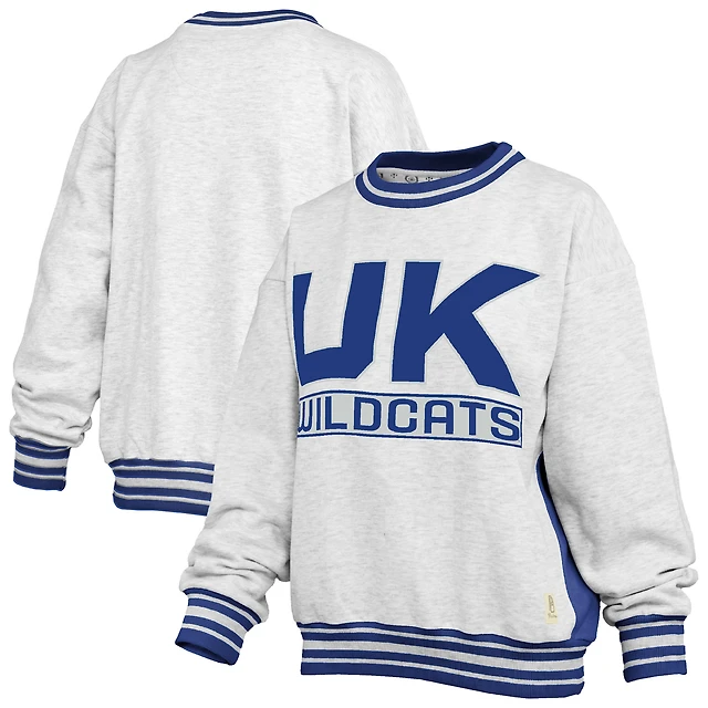 Women's Pressbox Heather Gray/Royal Kentucky Wildcats Endzone Crewneck Sweatshirt