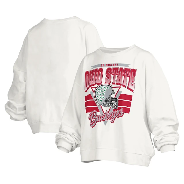 Women's Pressbox White Ohio State Buckeyes Janice Retro Logo Oversized Pullover Sweatshirt