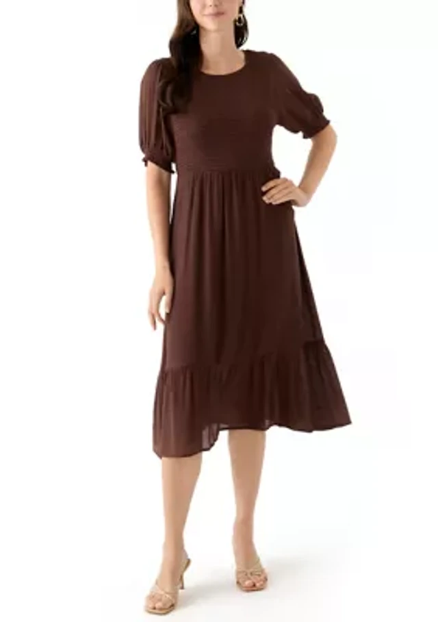 Women's Puff Sleeve Smocked Midi Dress