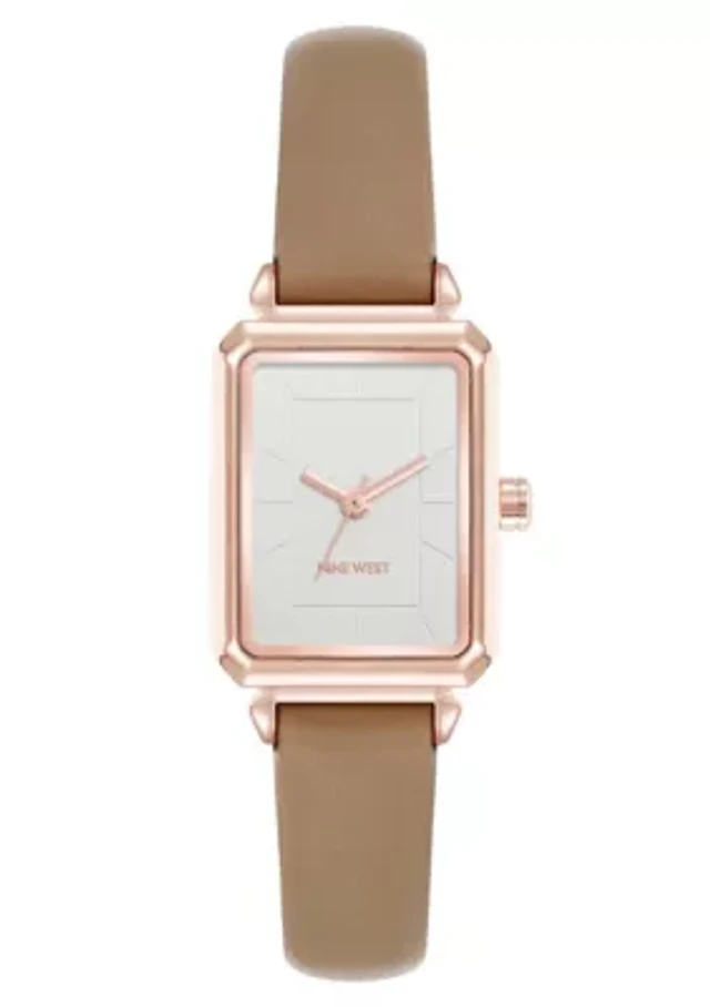 Women's Rectangle Taupe Faux Leather Band Watch