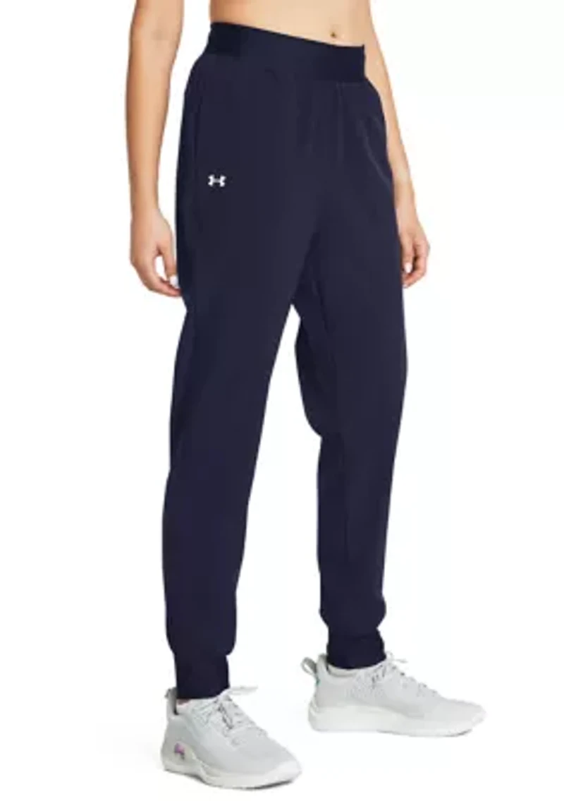 UA Storm technology repels water without sacrificing breathability Ultra-light, stretch-woven fabric for totally unrestricted movement 4-way stretch material moves better in every direction High-rise encased elastic waistband with internal drawcord Open hand pockets Uses a fluorine-free water repellent treatment Style #: 1382727 Inseam: 27.5" Pockets: Yes 87% Polyester/13% Elastane Imported Tapered leg fit Machine wash cold with like colors Use only non-chlorine bleach when needed Tumble dry low Do not iron Do not use softeners Do not dry clean Elastic waistband Unlined Imported Product Specifications 27.5" Inseam Material & Care Polyester, elastane Machine washable