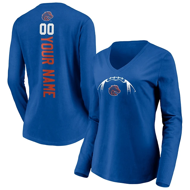 Women's Royal Boise State Broncos Playmaker Football Personalized Name & Number Long Sleeve V-Neck T-Shirt