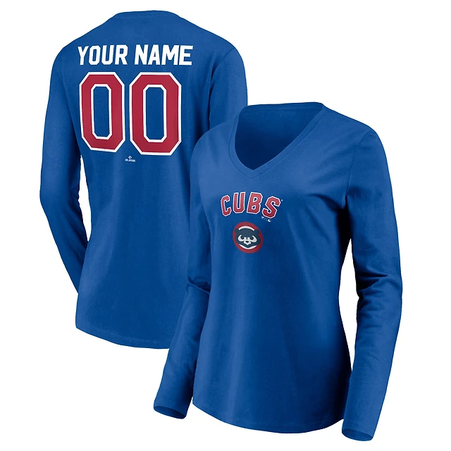 Women's Royal Chicago Cubs Cooperstown Collection Personalized Winning Streak Long Sleeve V-Neck T-Shirt