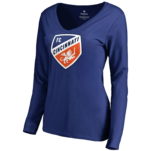Women's Royal FC Cincinnati Primary Logo Long Sleeve V-Neck T-Shirt