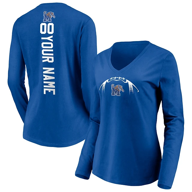 Women's Royal Memphis Tigers Personalized Playmaker Football Long Sleeve V-Neck T-Shirt