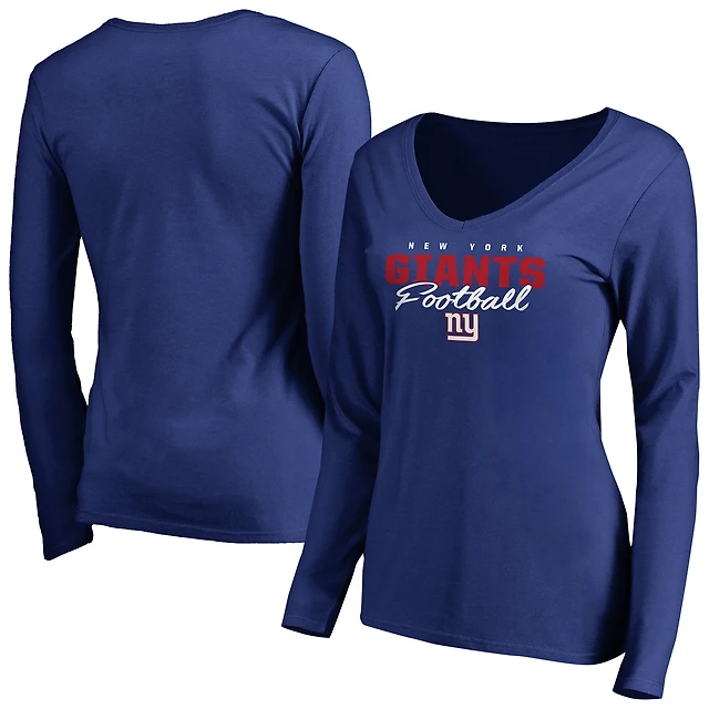 Women's Royal New York Giants Iconic Collection Script Assist Long Sleeve V-Neck T-Shirt