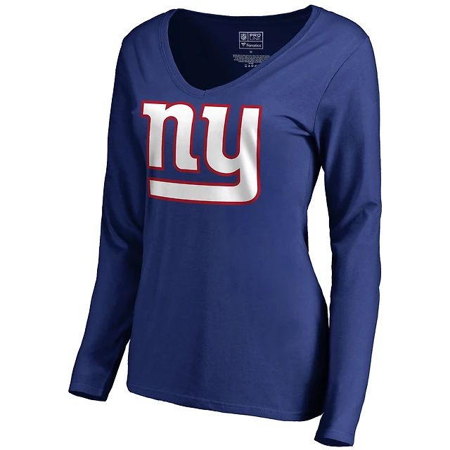 Women's Royal New York Giants Primary Logo V-Neck Long-Sleeve T-Shirt