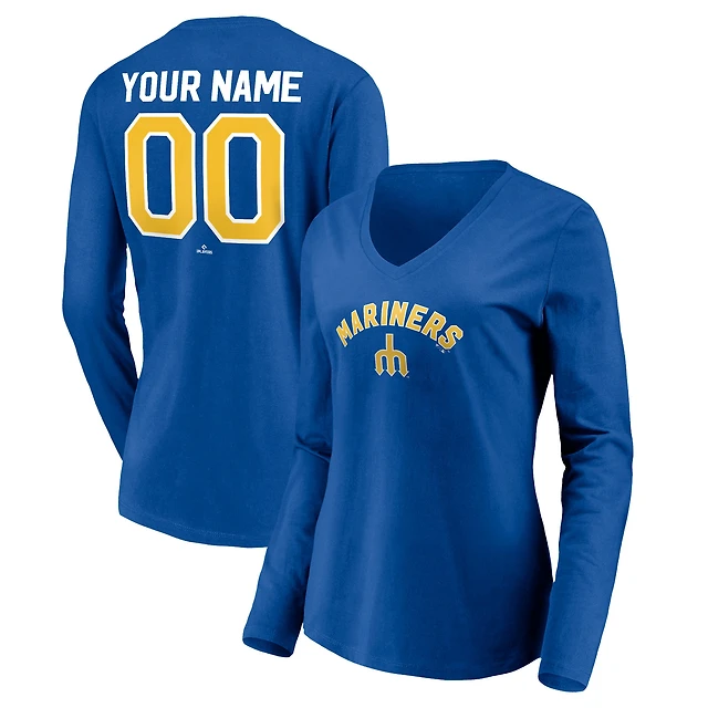 Women's Royal Seattle Mariners Cooperstown Collection Personalized Winning Streak Long Sleeve V-Neck T-Shirt