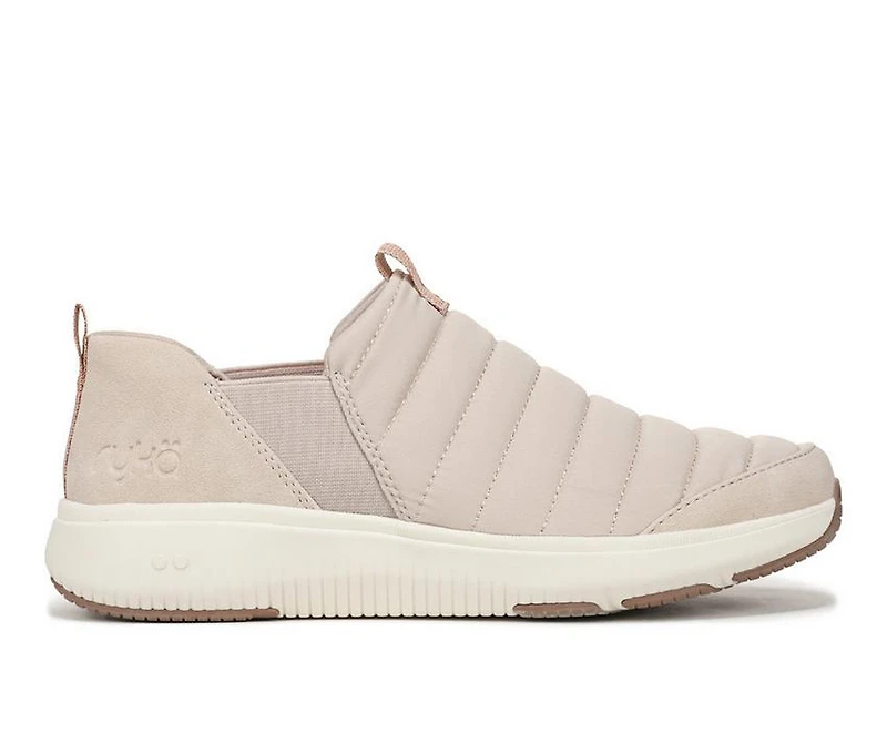 Women's Ryka Pursuit Slip-on Designed for ease, comfort, and casual style, this cushioned everyday sneaker blends a sleek upper with cozy step-in comfort. The textured fabric upper features horizontal quilting for a padded look and feel, while the low-profile collar allows for ankle mobility and an easy on/off experience. A soft interior lining adds to the all-day wearability, and the lightweight midsole supports movement with a cushioned ride. Perfect for errands, lounging, or light walks, this shoe delivers modern simplicity without sacrificing comfort.