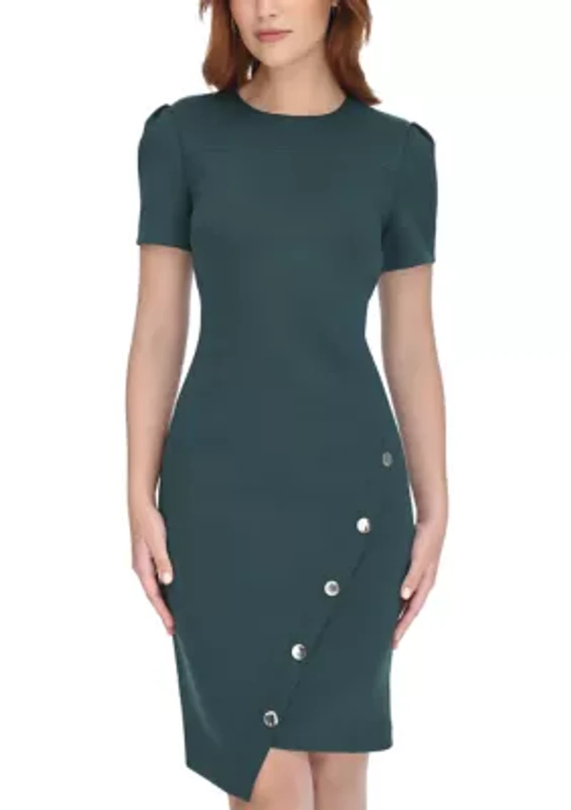 Women's Short Sleeve Asymmetric Studded Scuba Hem Sheath Dress