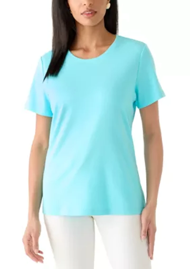 This Kim Rogers® shirt combines classic comfort with modern style. Designed with a flattering fit and soft fabric, it’s perfect for effortless everyday wear. Pullover Crew neck Short sleeves Imported Product Specifications 26.5" L Material & Care 100% cotton Machine washable